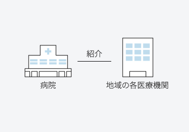 他の病院や診療所から紹介を受け、患者様に受診していただくほか、当院からもより専門性の高い病院や他の疾患も複合的に診療できる病院に紹介して患者様をみてもらうこともあります。